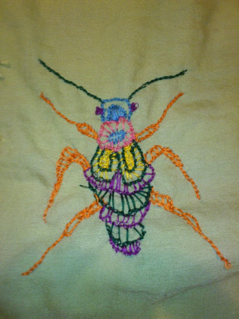 Love your embroidery...in fact bugs crawling over things is what I like to do. Get hold of some twee fabric and put lots of crawlies over it...fab.
